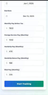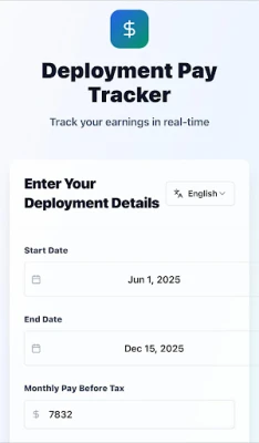 Are you tired of struggling to keep track of your deployment pay accurately? Our app is here to solve that problem for you. By providing real-time tracking and precise calculations, we take the guesswork out of managing your finances during deployments. Say goodbye to stress and confusion, and hello to financial clarity and peace of mind.