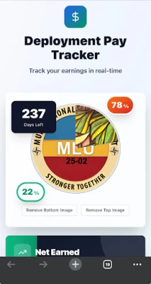 - Accurate calculations: Say goodbye to manual errors and guesswork when it comes to tracking your deployment pay. Our app ensures precise calculations every time.