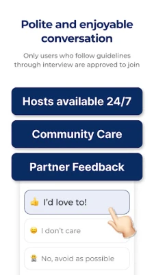 • 24-hour resident hosts - Only users who pass interviews and follow guidelines can participate, ensuring conversations in a verified community