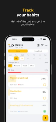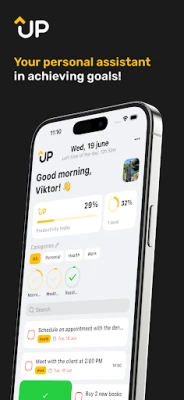 🔥 Track your progress according to 3 parameters: health, intellect and willpower. UP counts tasks completed, habits, and goals achieved. Just work on yourself and UP will show your progress.